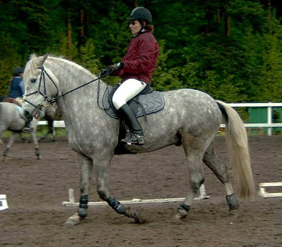 Maastoesteillekin tämä poika on oikea kyky kunhan ei ratsastaja pelkää vauhtia, koska sitä tältä pojalta riittää eikä poika ole moksiskaan vaativan maastoradan jälkeen, vaan on vaikka heti valmis menemään uudelleen. Ei poni kyllä pelkääkään paljoa mitään, mitä nyt välillä vähän kiusaa hoitajia ja ratsastajia ’säikkymällä’ jotain pieniä vihreitä miehiä jossain puskassa.